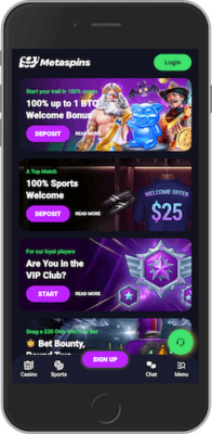 Nem érhető el dedikált Metaspins mobil app az oldalon. A sportfogadás oldal azonban ennek ellenére is mobilbarátnak nevezhető. Ez a reszponzív, HTML5 alapú webdizájnnak köszönhető, ami lehetővé teszi, hogy minden eszközről elérhető legyen az oldal. Bárhol és bármikor felmehetsz sportfogadást kötni Android, iOS vagy bármi egyéb operációs rendszerről, csak internet hozzáférésed legyen.